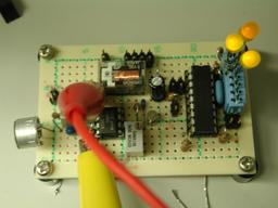 動作実験を繰り返しながら、音声スイッチ部の半固定抵抗で感度を調整し最適な状態にする。